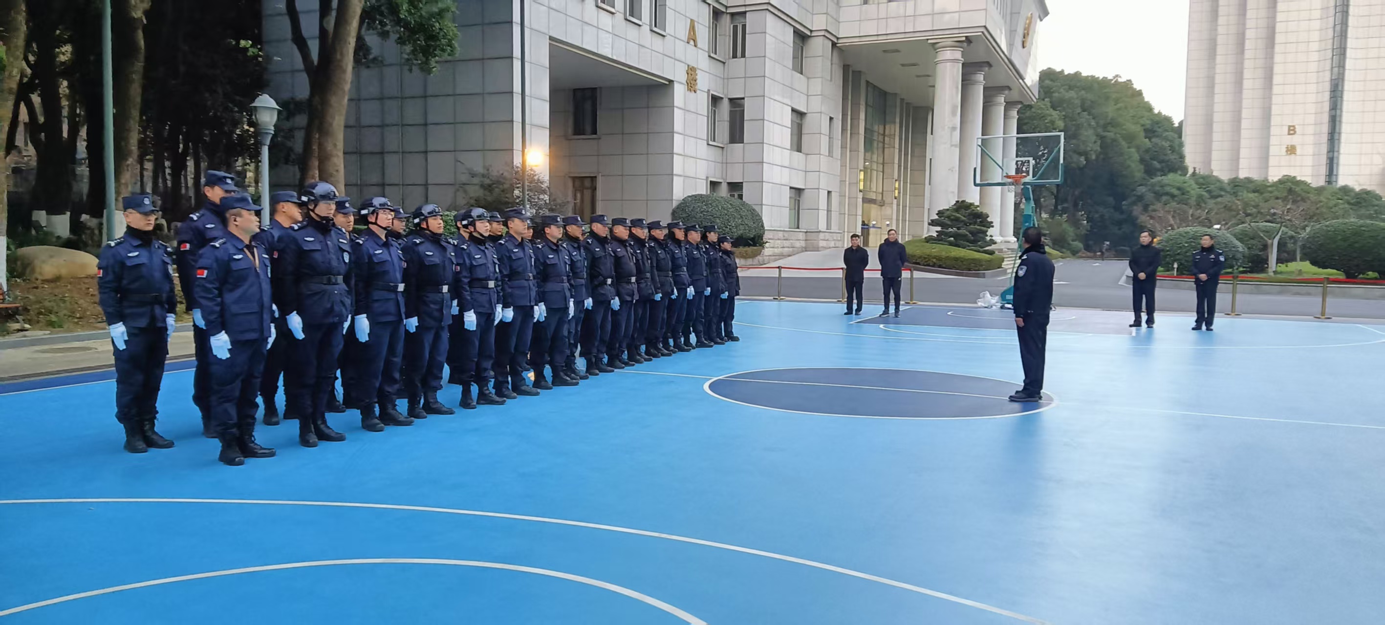 為實(shí)現(xiàn)“無(wú)感交接、平穩(wěn)過(guò)渡”,鼓樓分公司前期組建專項(xiàng)調(diào)研團(tuán)隊(duì),精準(zhǔn)對(duì)接崗位職責(zé)、工作流程與周邊環(huán)境;同步升級(jí)安保裝備,隊(duì)員身著嶄新的冬執(zhí)勤服、佩戴白手套,35臺(tái)高性能對(duì)講機(jī)保障溝通“秒達(dá)”,門(mén)崗配備防暴裝備、標(biāo)準(zhǔn)跨立執(zhí)勤,成為省廳大院規(guī)范專業(yè)的“安全風(fēng)景線”。